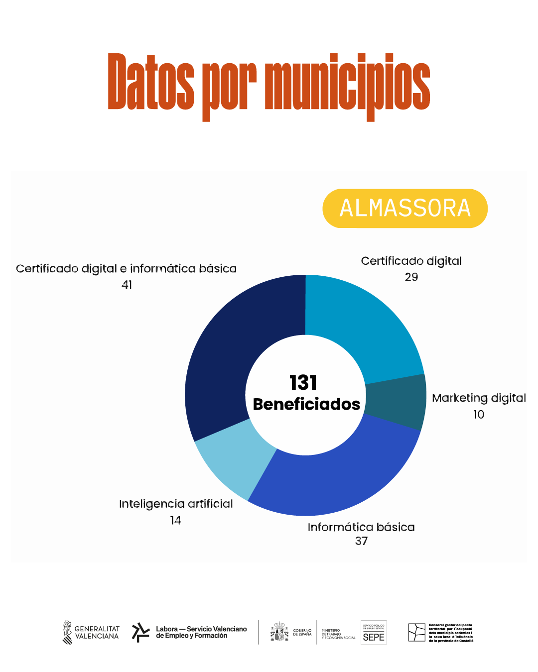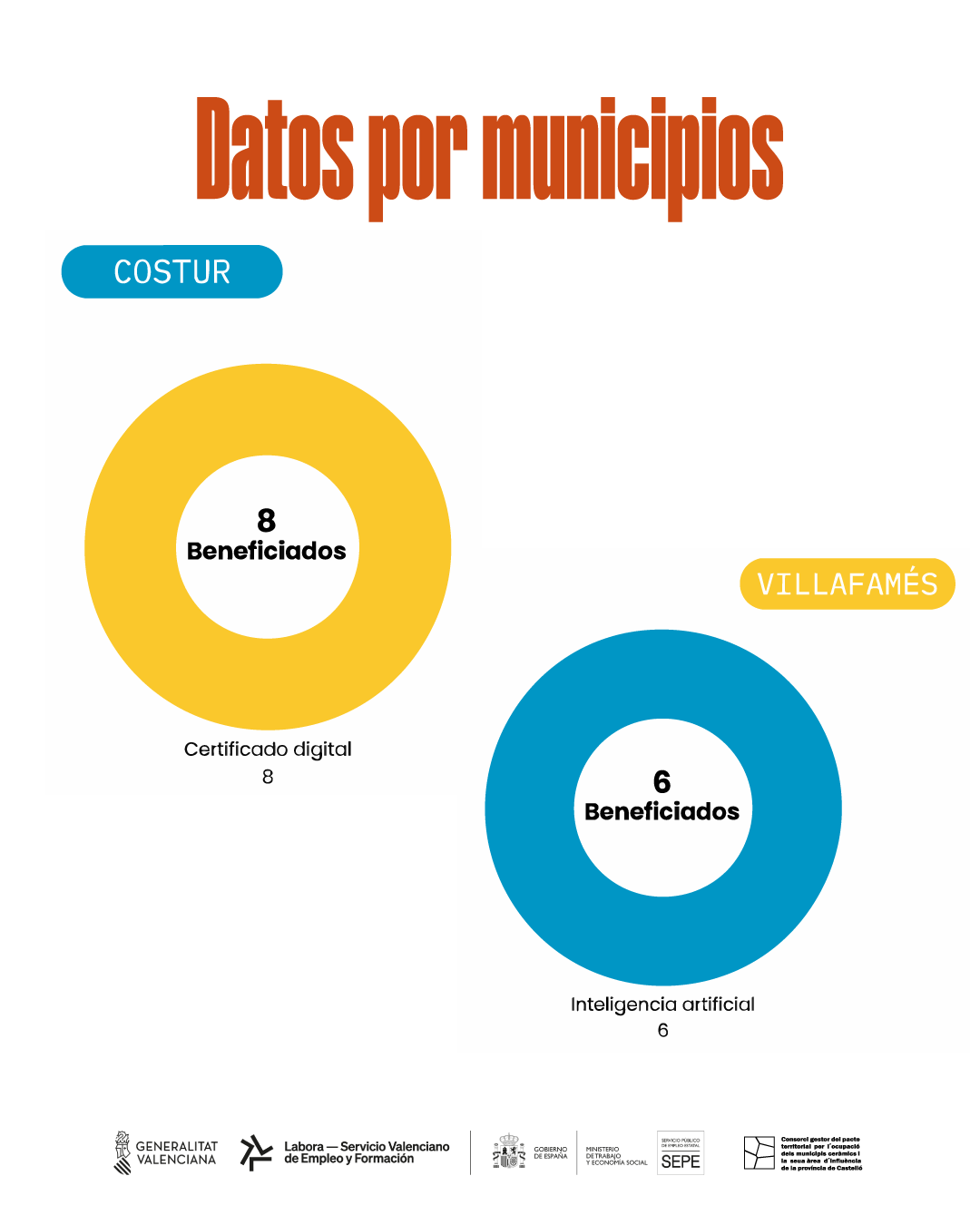 Durante la primera fase del proyecto, celebrada en 2023, se impartieron 19 talleres con una asistencia de 207 participantes. En la segunda fase, realizada en 2024, el número de talleres aumentó a 27, con un total de 313 asistentes. En conjunto, se han impartido 92 horas de formación en los municipios de Burriana, Betxí, Almassora, Costur, Sant Joan de Moró, L’Alcora y Vilafamés.
