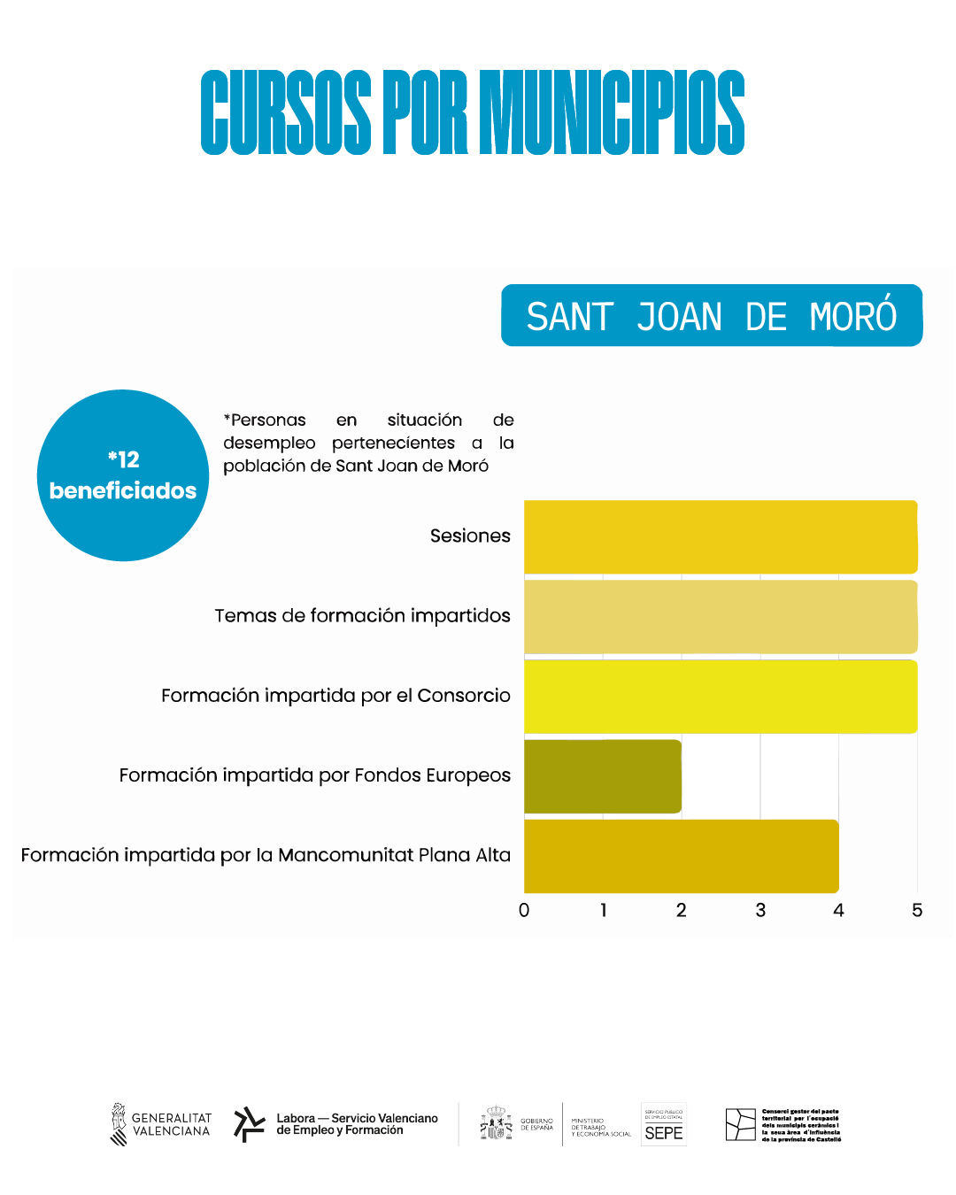 Por último, Sant Joan de Moró ha acogido un curso de cinco sesiones sobre búsqueda de empleo y autoempleo, dirigido a personas en situación de desempleo, con 12 participantes beneficiados de la formación. Cabe destacar que hay alumnos ya incluidos en otras jornadas.
